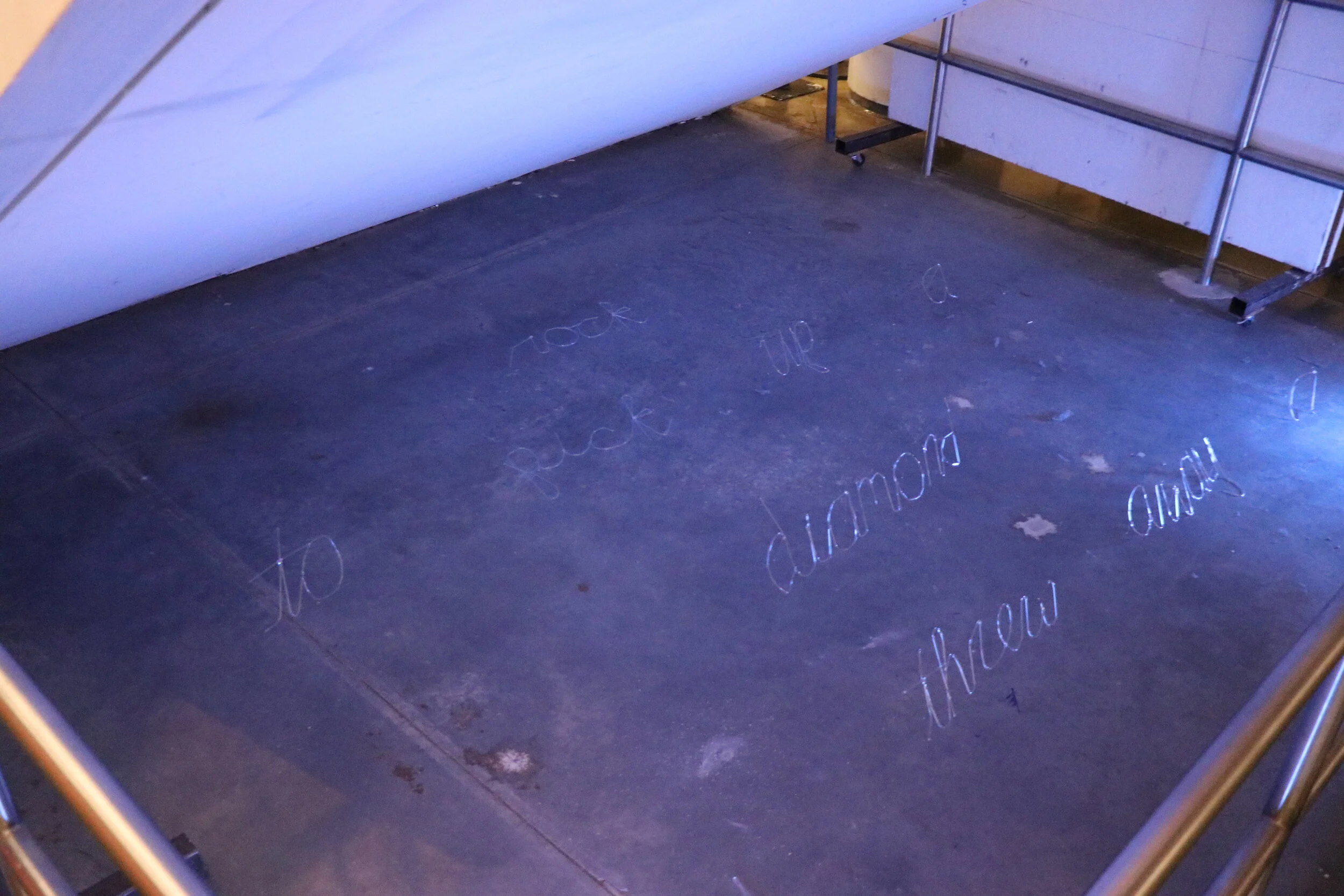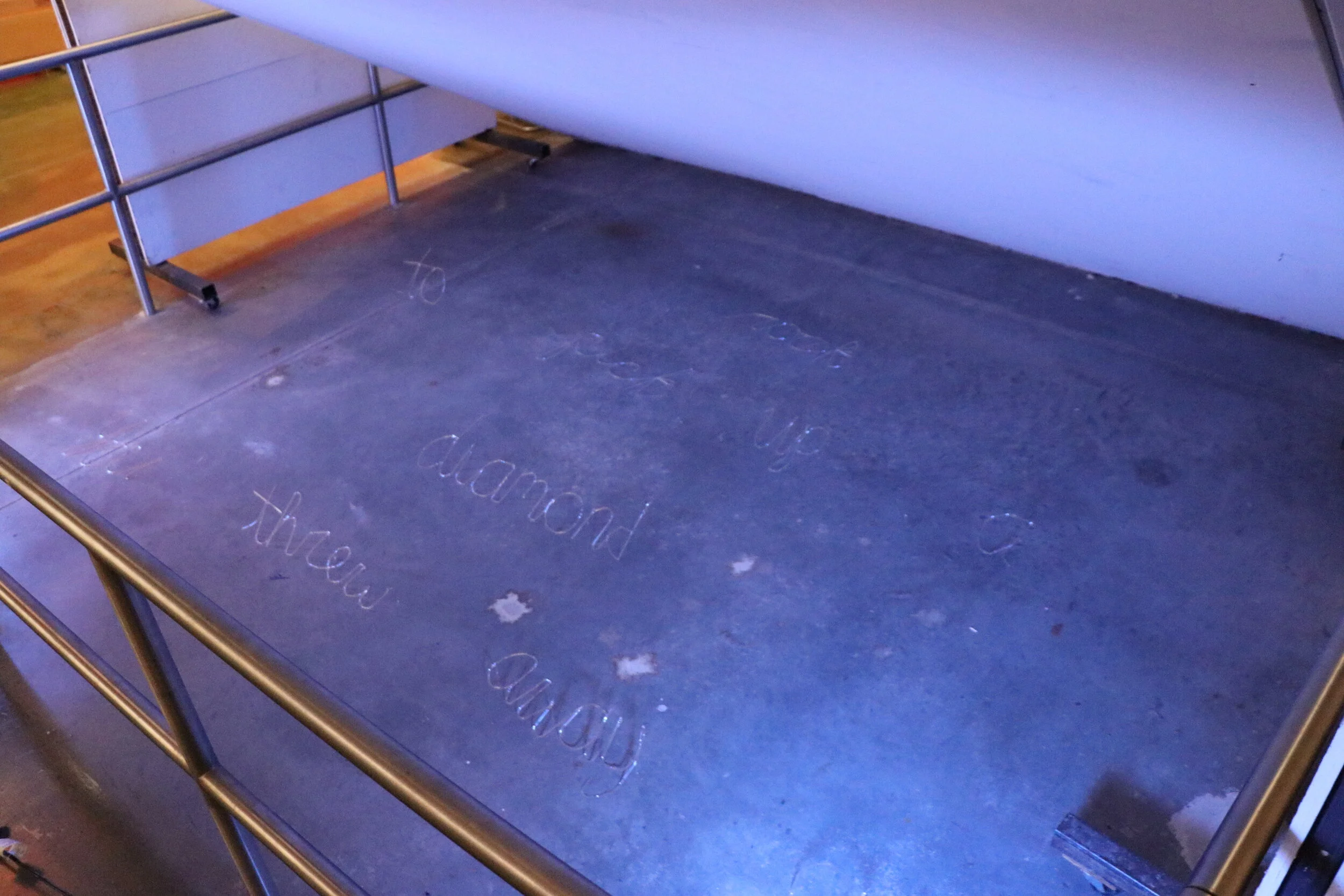 You should know [“You threw away a diamond to pick up a rock”] (2018)Glass installed underneath a staircase